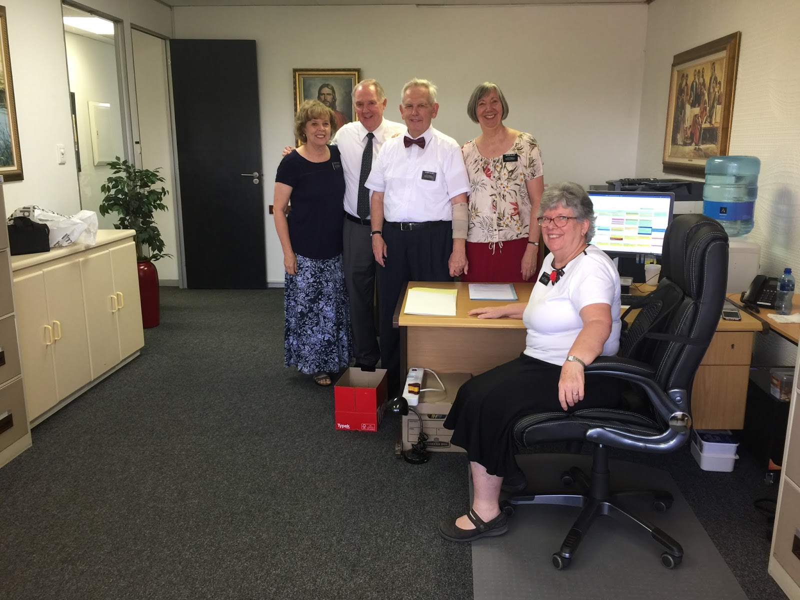 Next stop, the Mission Office. We are glad to have Elder and Sister Howell, from South Jordan, Utah, to train us before they leave in four weeks. The office is in great shape, and we won't have any trouble taking over their good systems. We also share the office with Sister Damon. She's a Senior Sister from Eugene, Oregon, and she does the apartment stuff--leases, repairs, utilities, etc. We are worried because she is going home in May, and there is no replacement for her yet. The number of senior couples is going down in the mission. We need more!!! If you have any desire to serve a mission, let us know and you can come and join us!!